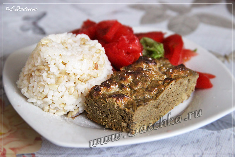 - Подавала с рисом на гарнир. Кстати, отварной рис или манную крупу можно было и сразу добавить в печёночный фарш.