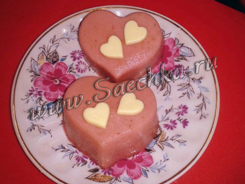 Клубнично-молочное желе в форме сердца